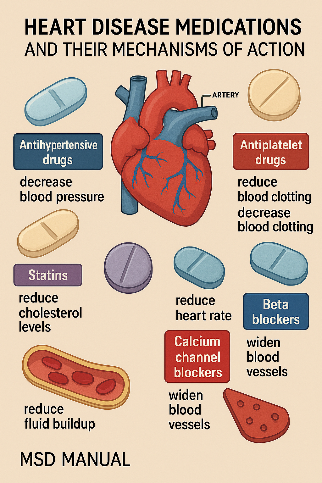 - 지질강하제(스타틴 등): 혈중 콜레스테롤 수치를 낮추어 동맥경화를 예방합니다.