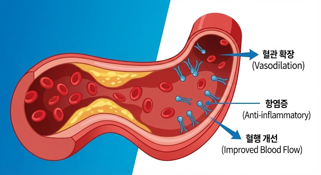 - 항염증 작용: 혈관벽의 염증을 유발하는 사이토카인 생성을 억제하여 동맥경화를 예방합니다.